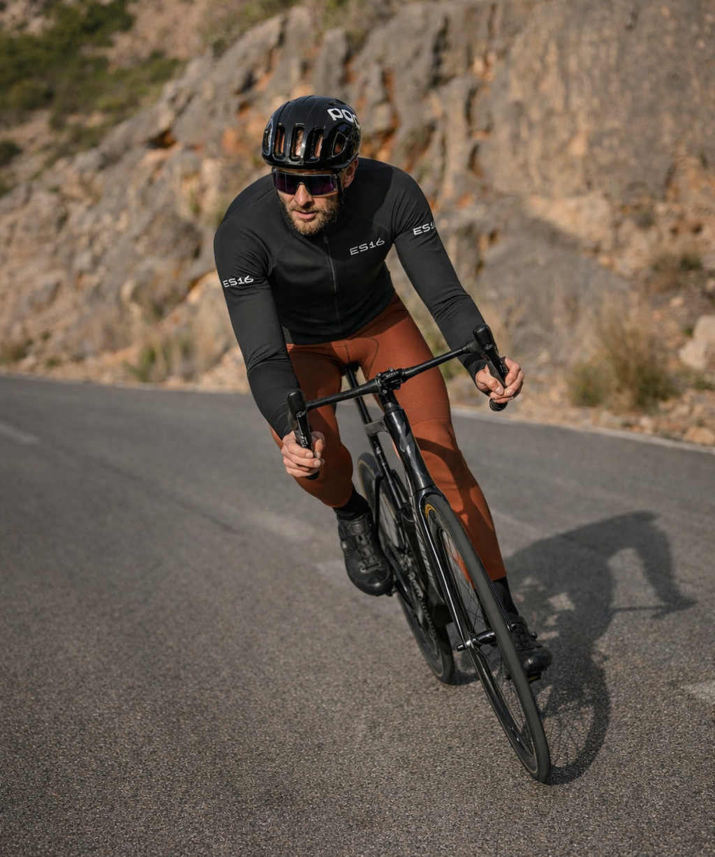 Bei ES16 erhalten Sie nicht nur funktionales Cykeltøj, sondern auch Designs, die gut aussehen. Wir bieten Cykeltøj für Herren in klassischen und modernen Farben, die Ihnen auf dem Rad ein professionelles und stilvolles Aussehen verleihen. Unsere Radtrikots, Bibshorts und Jacken sind sowohl praktisch als auch stilvoll, sodass Sie mit Selbstvertrauen fahren können – egal, ob Sie alleine trainieren oder an einem Rennen teilnehmen.